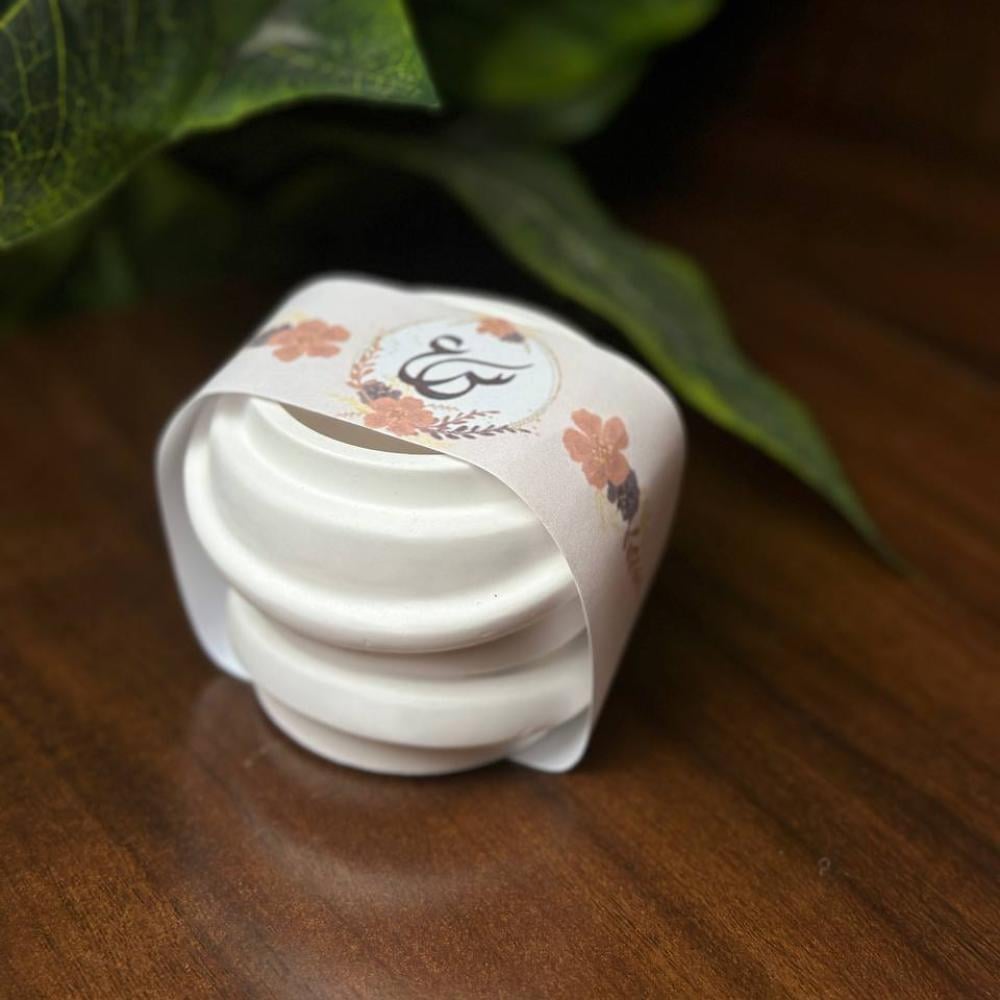هو عبارة قطعة مصنوعة من مادة كونكريت الأبيض ، بتصميم أنيق وأسطواني مع تفاصيل متموجة. مصنوع يدوياً بعناية فائقة، مما يجعله فريداً ومميزاً. يُستخدم كهدية راقية توزع في المناسبات الخاصة مثل حفل زفاف ، مما يجعله خياراً مثالياً للإهداء للضيوف. مناسب أيضا كديكور جذاب ورمز لتقدير الضيوف في الاحتفالات.